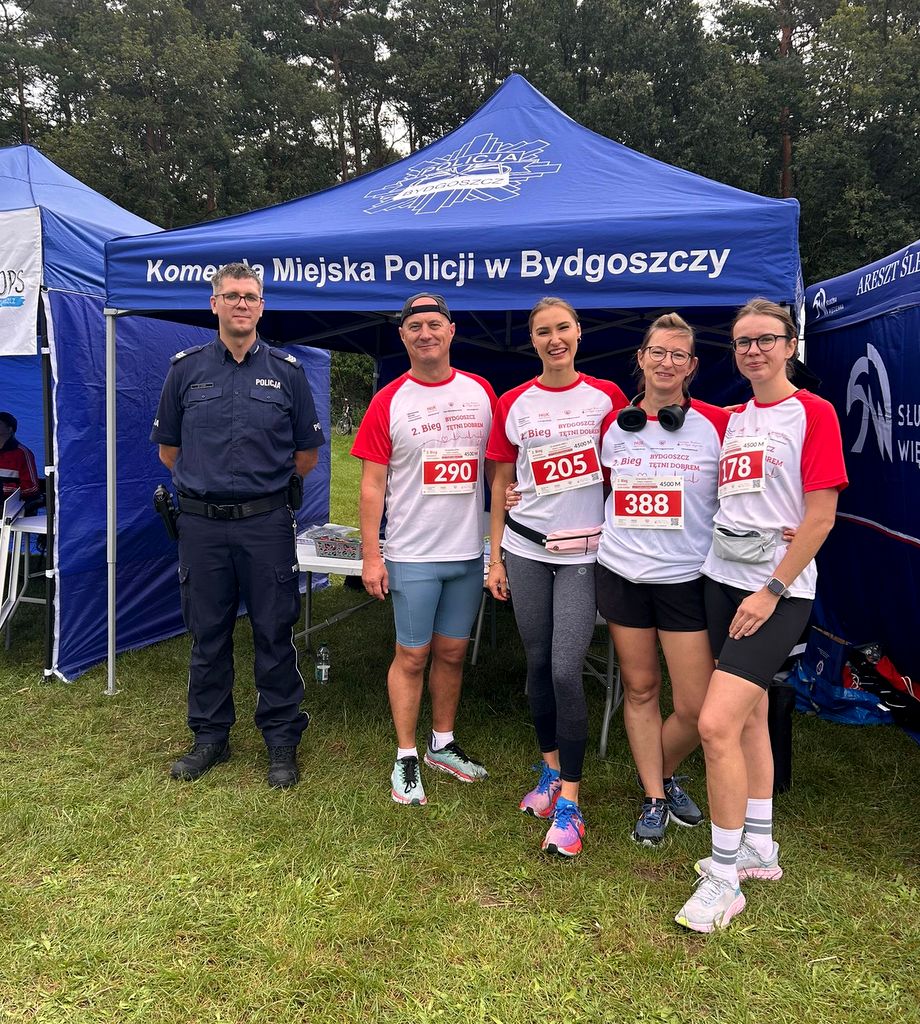 W minioną sobotę (13.09.2025), kilkoro mundurowych i pracowników cywilnych zameldowało się na linii startu 2. Biegu „Bydgoszcz Tętni Dobrem”, wspierając szczytną ideę oddawania krwi. Trasę, po ścieżkach Leśnego Parku Kultury i Wypoczynku w Myślęcinku, pokonali: podkomisarz Robert Ciepłowski Naczelnik Wydziału Kryminalnego Komisariatu Policji Bydgoszcz-Śródmieście, młodszy aspirant Karolina Kasprzyk z Wydziału Prewencji Komendy Miejskiej Policji w Bydgoszczy, aspirant Łukasz Ważyński z Wydziału Prewencji Komisariatu Policji Bydgoszcz-Szwederowo, a także pracownicy cywilni: Joanna Krawczyk z Komendy Miejskiej Policji w Bydgoszczy oraz Edyta Banaszewska z Komisariatu Policji Bydgoszcz-Śródmieście.