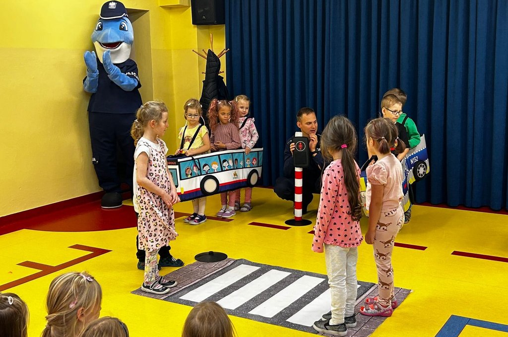 Zajęcia zakończyły się zabawą w miasteczku ruchu drogowego, gdzie dzieci mogły w praktyce sprawdzić zdobytą wiedzę, ucząc się poprzez zabawę prawidłowych zachowań na drodze.