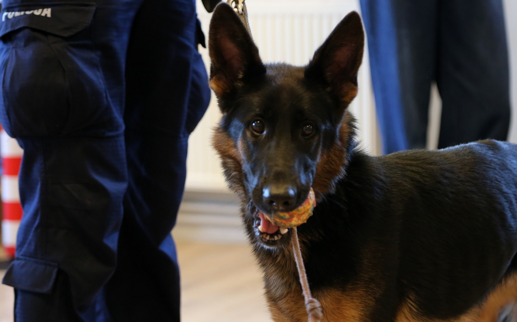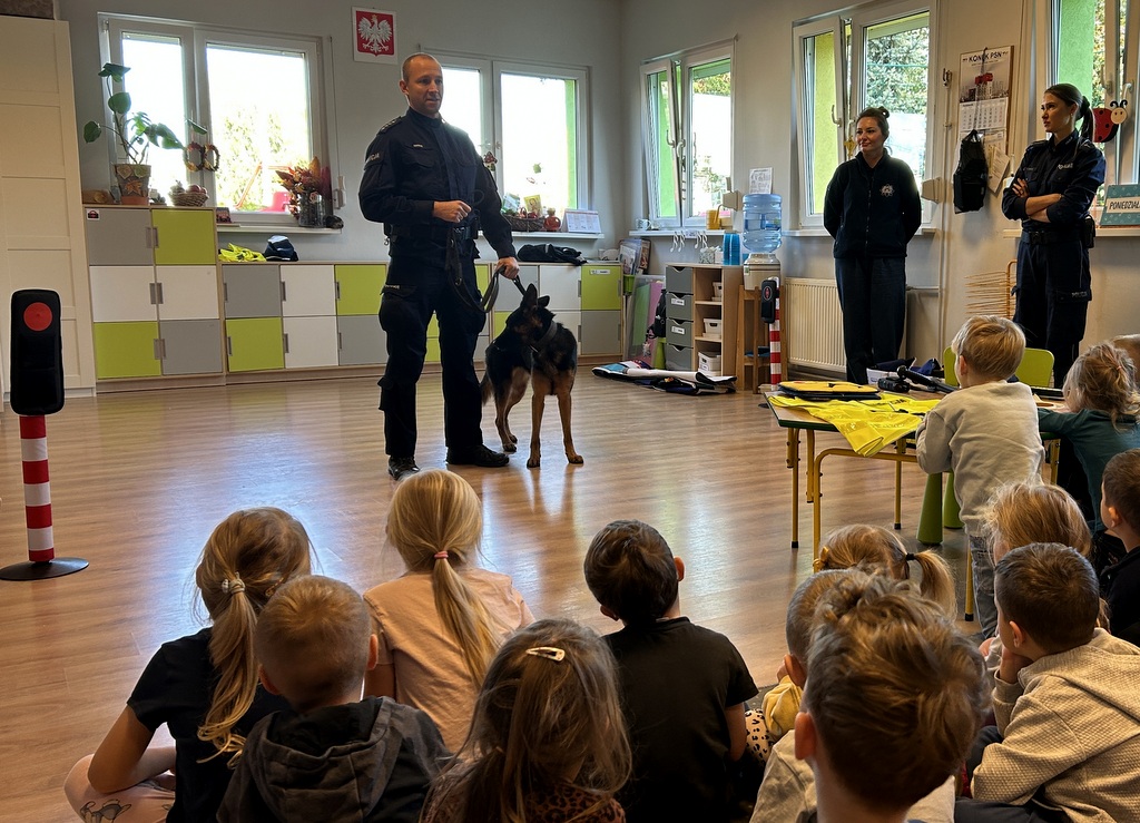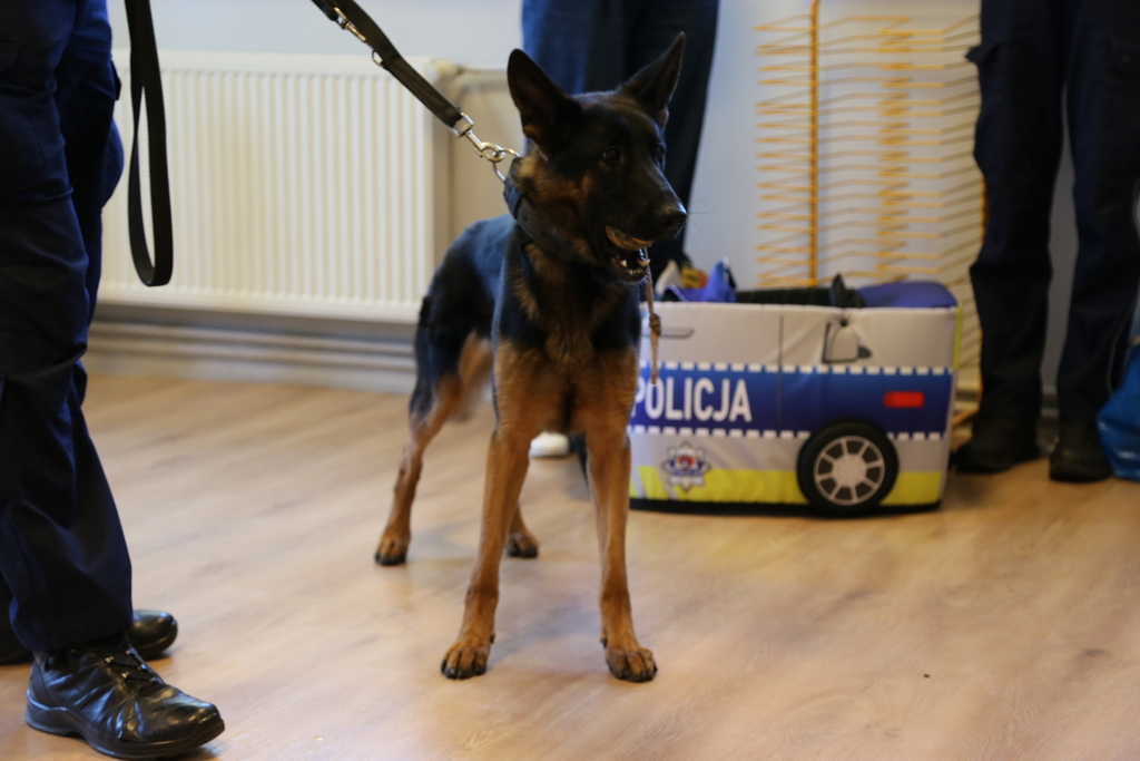 Szczególnym zainteresowaniem cieszyło się spotkanie z przewodnikiem psa służbowego, który opowiedział o swojej pracy i codziennych obowiązkach związanych z opieką i szkoleniem czworonoga - Toli. Dzieci z zaciekawieniem oglądały pokaz posłuszeństwa i umiejętności psa.
