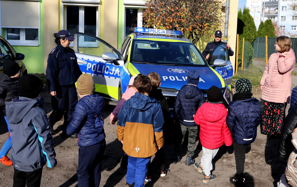 Podczas wczorajszej (21.10.2025) wizyty dzieci miały okazję z bliska zobaczyć sprzęt policyjny, a także wsiąść do radiowozu. Najmłodsi poznali zasady bezpiecznego poruszania się po drogach oraz dowiedzieli się, jak prawidłowo korzystać z numeru alarmowego 112. Funkcjonariusze przypomnieli również, w jakich sytuacjach należy wzywać pomoc i jak zachować się wobec osób nieznajomych.