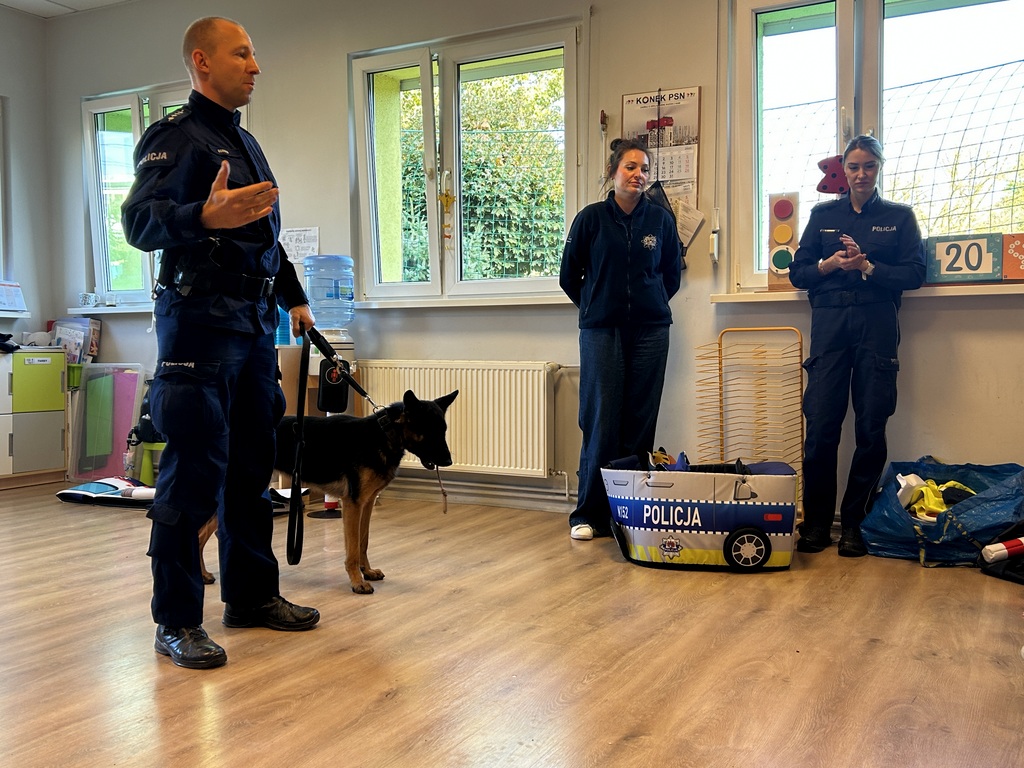 Bydgoscy mundurowi odwiedzili Przedszkole nr 28 Angielskojęzyczne „Mały Poliglota” w Bydgoszczy. W spotkaniu uczestniczyli profilaktycy z bydgoskiej komendy miejskiej i komisariatu na Wyżynach, a także przewodnik psa służbowego wraz ze swoim czworonożnym partnerem - Tolą.