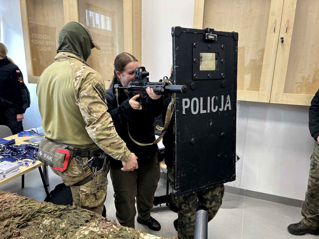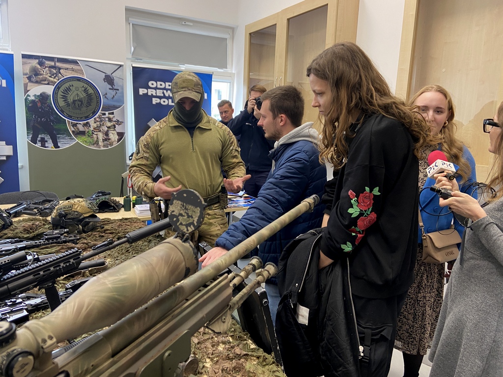 W wydarzeniu udział wzięli także policjanci z Samodzielnego Pododdziału Kontrterrorystycznego Policji w Bydgoszczy oraz funkcjonariusze z bydgoskiego Oddziału Prewencji Policji, którzy zaprezentowali specjalistyczny sprzęt jaki wykorzystują do służby. O charakterystyce swojej pracy opowiedzieli również przewodnicy psów służbowych, którzy przybyli wraz ze swoimi czworonożnymi partnerami, co wzbudziło duże zainteresowanie uczestników.