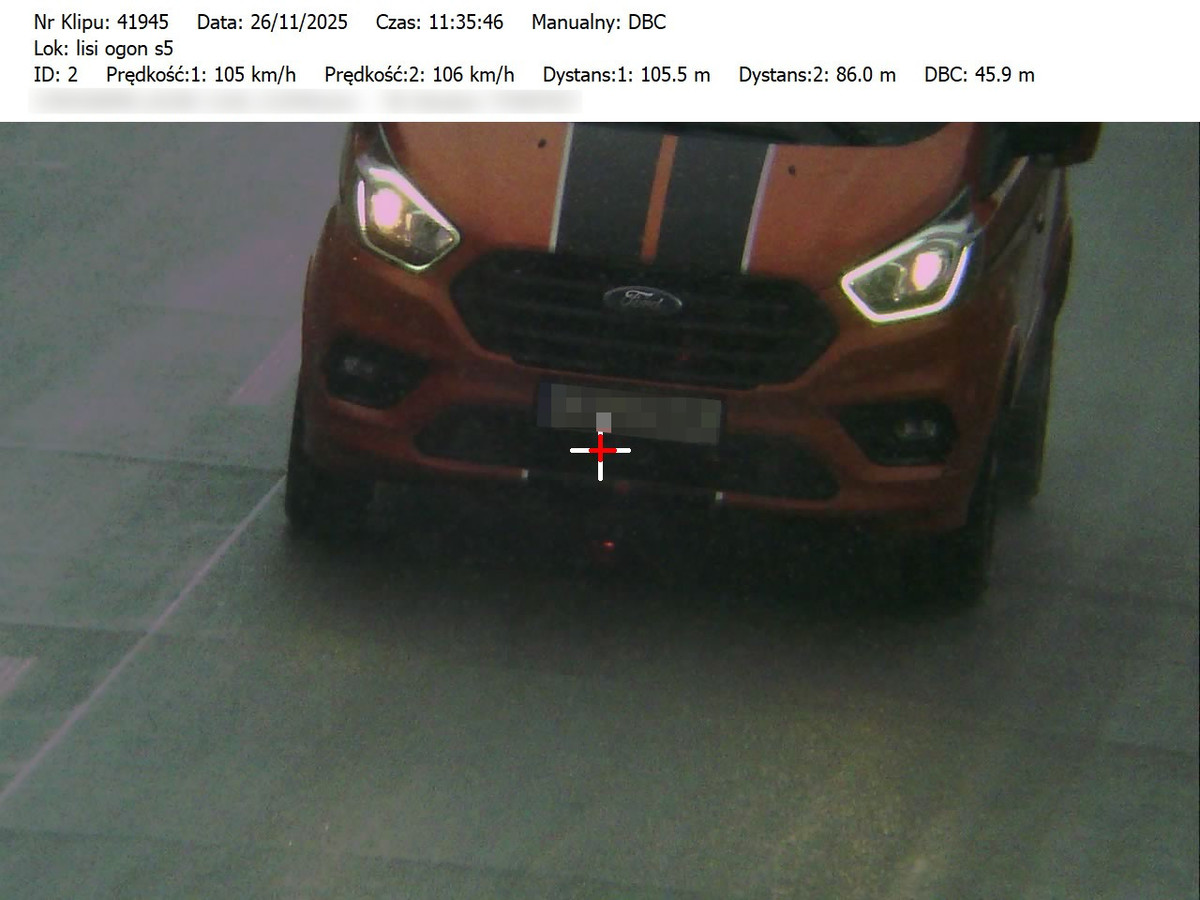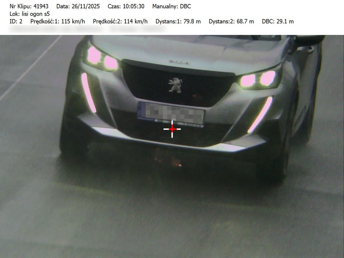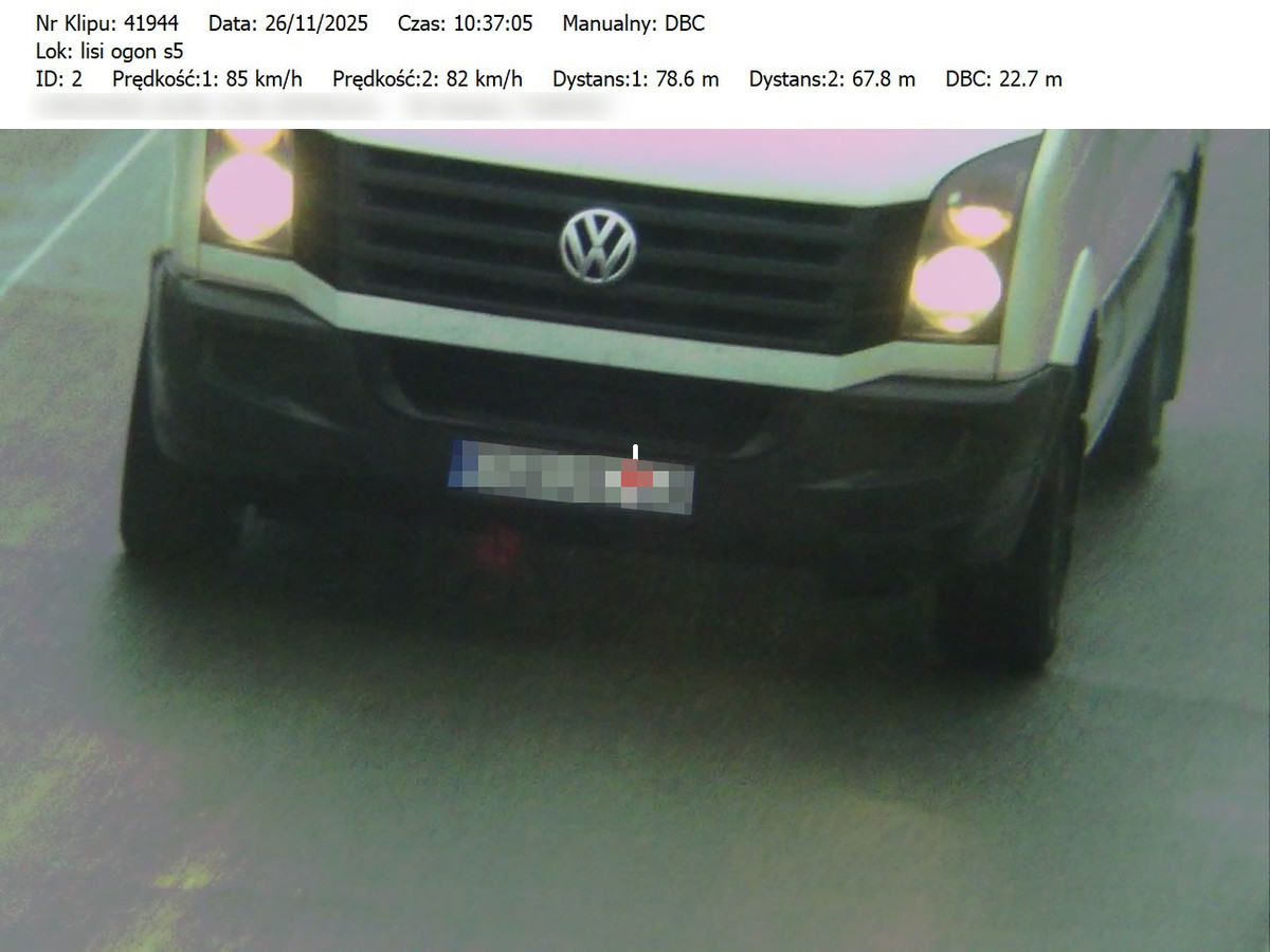 Podczas wczorajszej akcji (26.11.2025) policjanci sprawdzali, czy kierujący stosują się do obowiązku utrzymania właściwego dystansu od poprzedzającego pojazdu. Wykorzystali do tego urządzenie TruCAM umożliwiające wykonanie precyzyjnego pomiaru.
