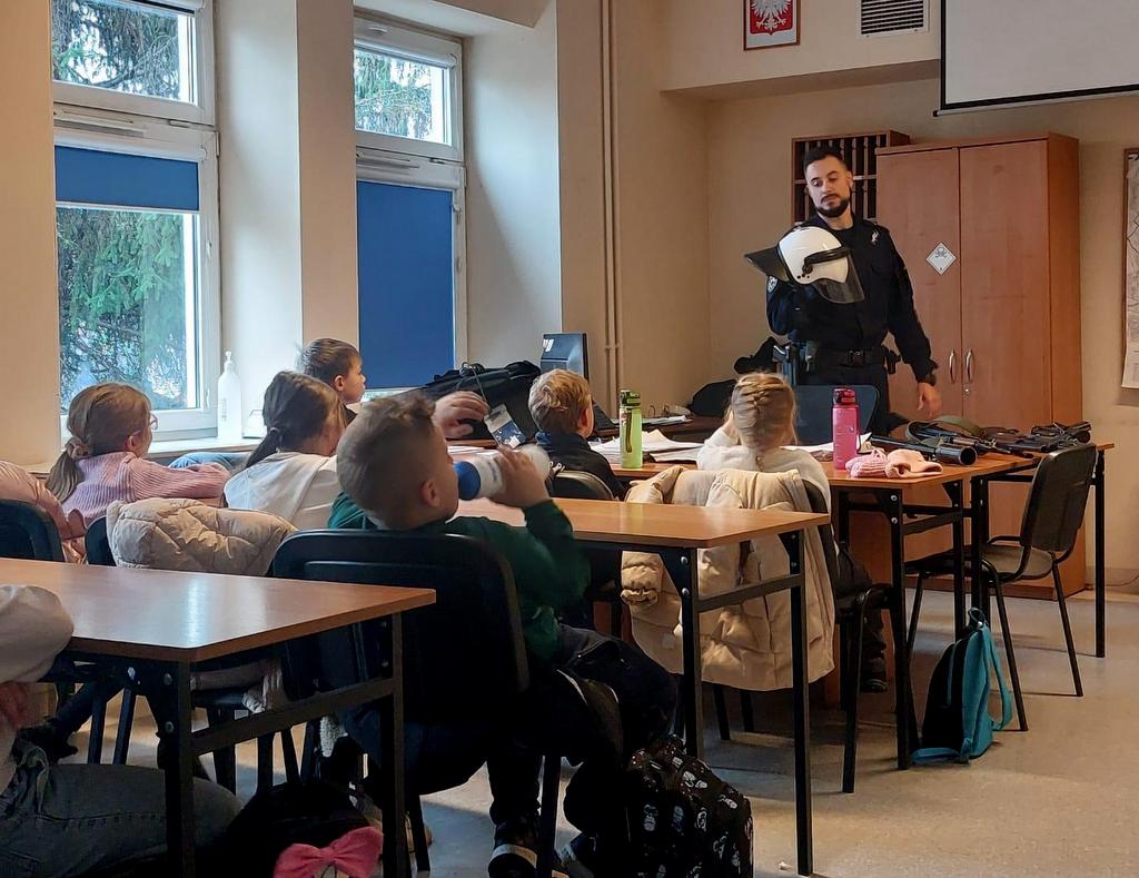Uczniowie mieli także możliwość obejrzenia sprzętu oraz wyposażenia policjantów, z którego na co dzień korzystają w służbie.