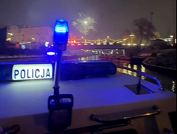 Policjanci byli również obecni na Brdzie w rejonie bydgoskiego Starego Rynku, gdzie Bydgoszczanie witali Nowy Rok. Funkcjonariusze ogniwa wodnego patrolowali akwen oraz nabrzeże czuwając nad bezpieczeństwem osób bawiących się w jego okolicy.