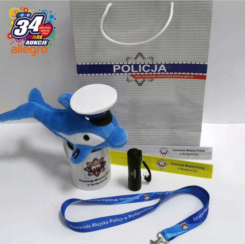 - zestaw gadżetów z logo Komendy Miejskiej Policji w Bydgoszczy