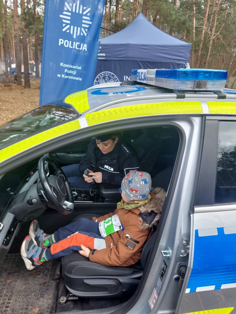 Podczas wydarzenia policjanci z komisariatu w Koronowie wystawili stoisko profilaktyczne, gdzie każdy chętny mógł zapoznać się z zasadami postępowania kwalifikacyjnego, naboru oraz z możliwościami dalszego kształcenia, a następnie rozwoju w policyjnej formacji. Mundurowi odpowiadali na szereg nurtujących pytań dotyczących specyfiki służby. Chętni mogli również obejrzeć policyjny radiowóz. Ta ostatnia atrakcja była w szczególnym zainteresowaniu najmłodszych uczestników biegu.
