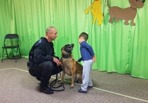 Policjanci opowiadali przedszkolakom o swoich psich partnerach